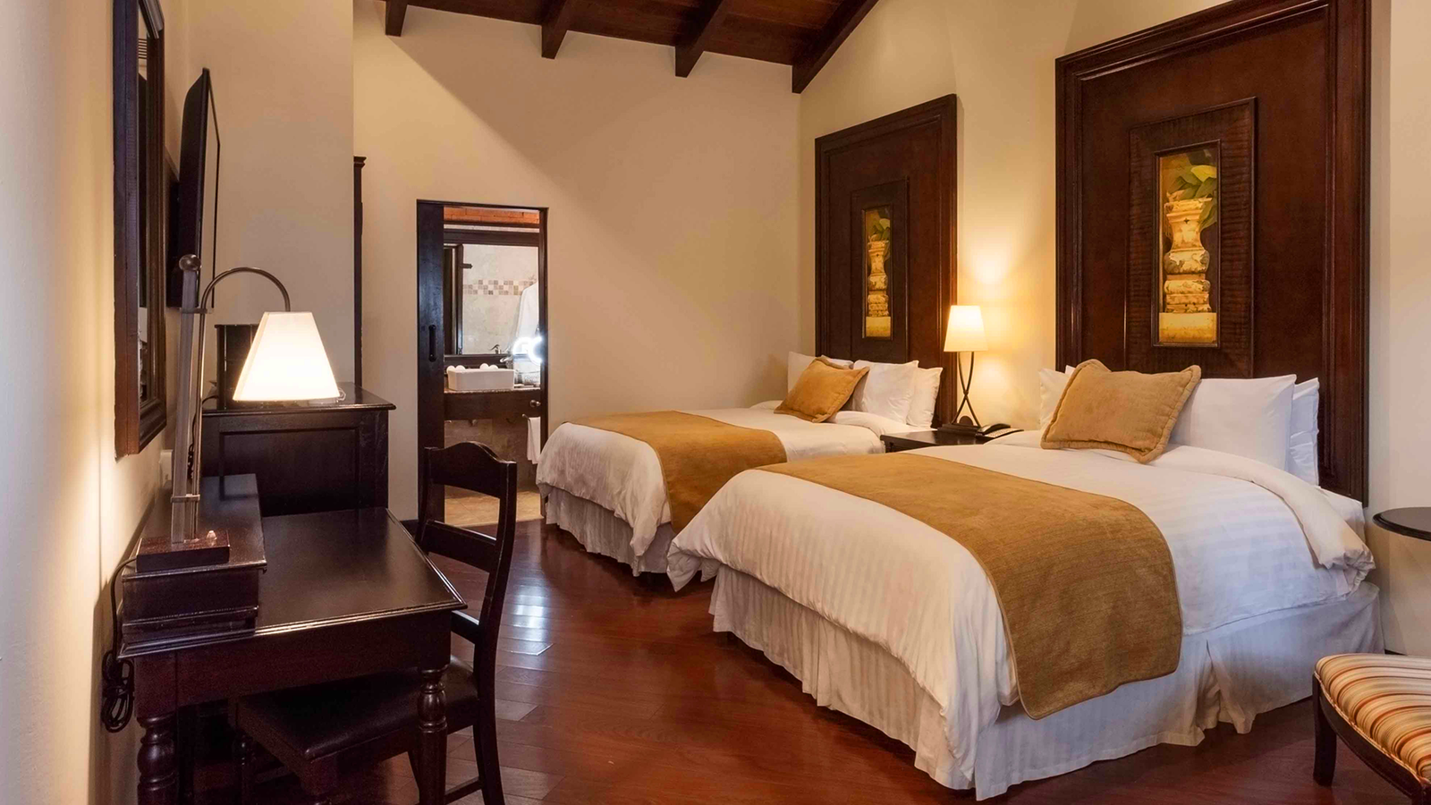 En el corazón de la Antigua Guatemala, nuestras habitaciones en Hotel Camino Real Antigua fusionan el encanto colonial de la ciudad con el confort y lujo contemporáneo. Un refugio acogedor donde cada detalle invita a un descanso profundo y a reconectar con tu bienestar.
